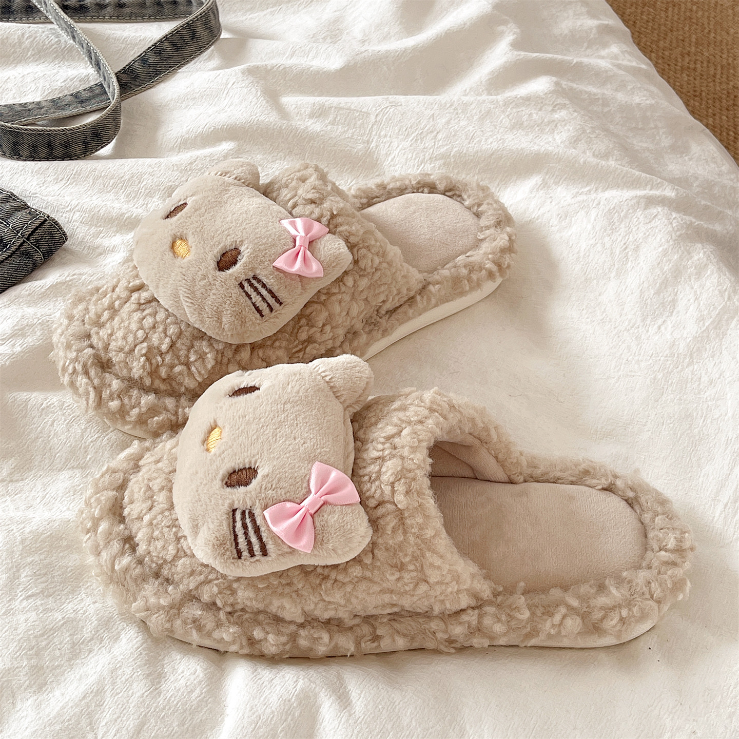 2025秋冬新款厚底百搭休闲包头拖鞋女外穿可爱蝴蝶结小狗毛毛拖鞋