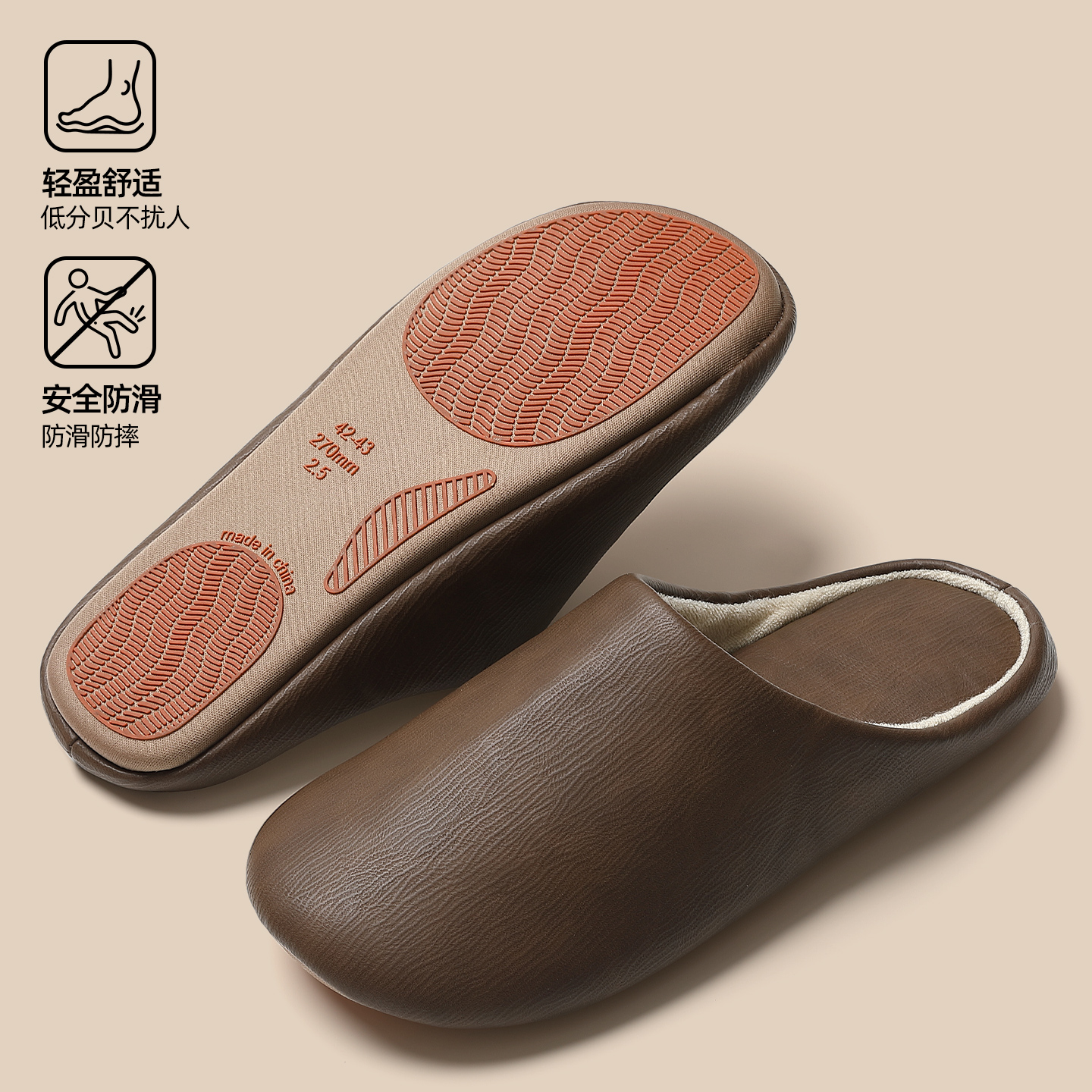包头拖鞋女居家室内春秋季情侣防滑静音时尚简约保暖皮拖鞋男复古
