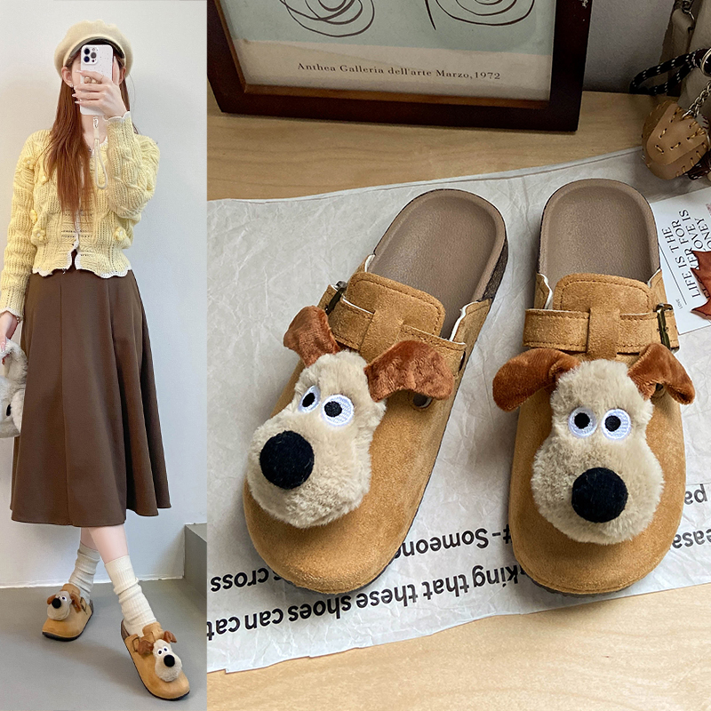 可爱修勾软底包头拖鞋女秋冬季保暖居家棉拖鞋轻便卡通绒面勃肯鞋
