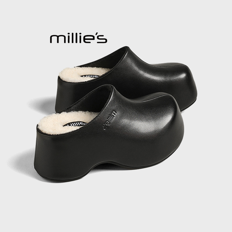 row风勃肯鞋女秋冬厚底包头拖鞋女外穿真皮穆勒博肯加绒毛毛拖鞋