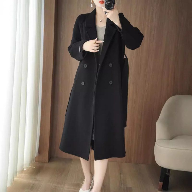 反季双面羊绒大衣女中长款2025新款西装领双排扣宽松显瘦毛呢外套