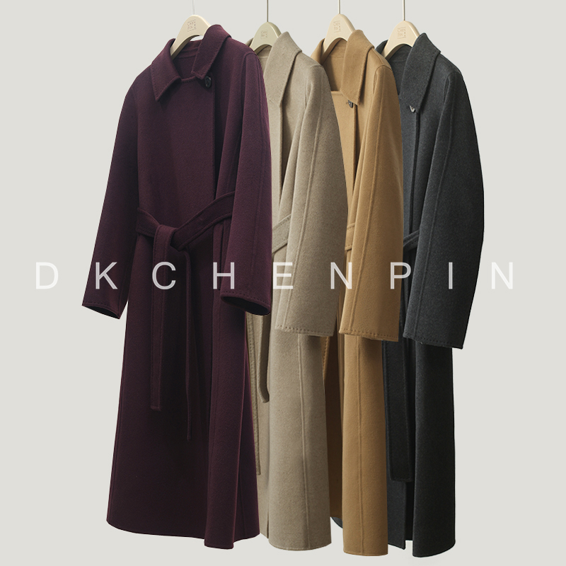 高端秋冬新款羊绒大衣女双面呢100%纯羊毛中长款系带超显瘦双面绒