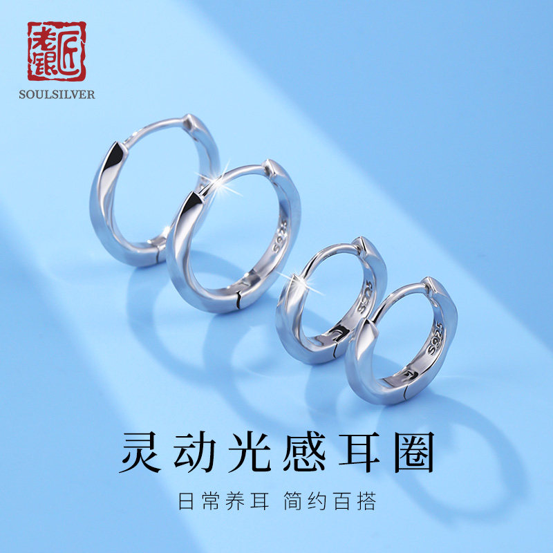 老银匠纯银耳圈耳环女款养耳洞睡觉免摘通勤s925银耳环女士银耳饰