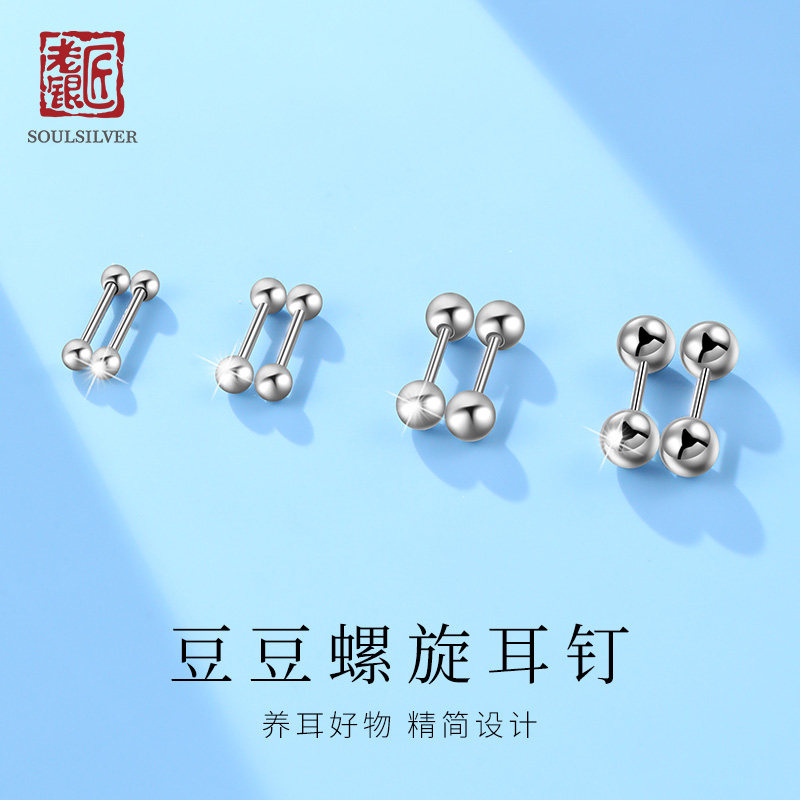 老银匠s990足银耳钉养耳洞纯银女睡觉免摘小豆豆银耳饰全银针耳钉