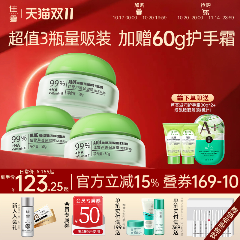 【三瓶量贩装】佳雪芦荟保湿霜50g 中度保湿滋润肌肤不油腻护肤霜
