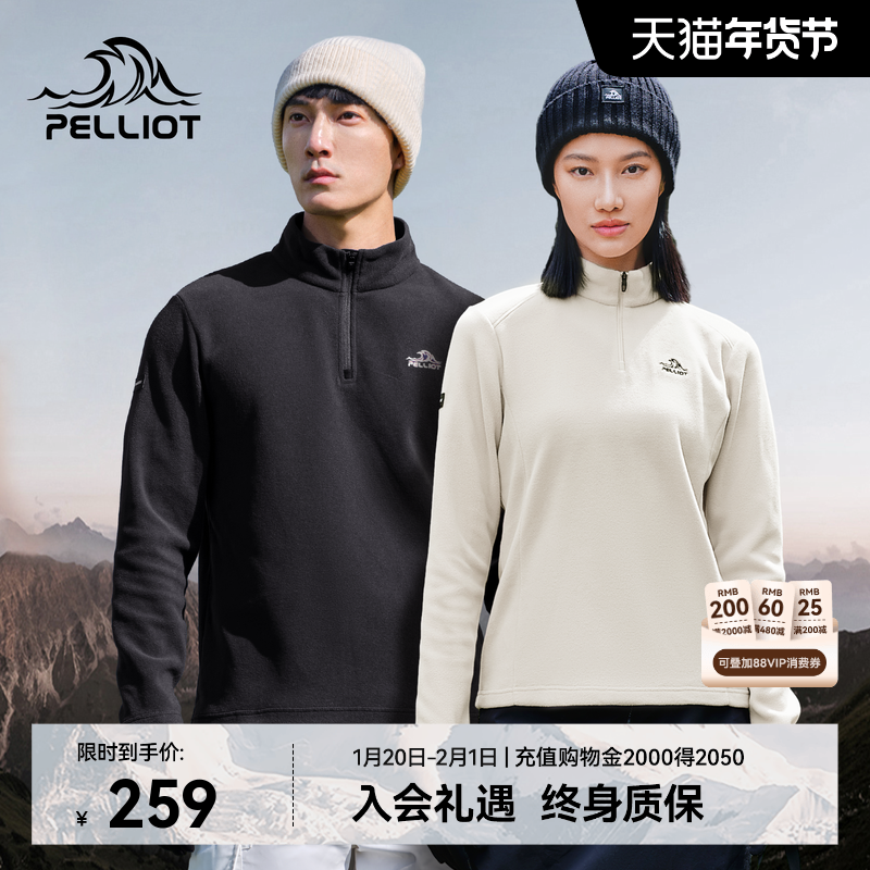【P系列】伯希和户外Polartec摇粒绒抓绒衣女半拉链中间保暖层男