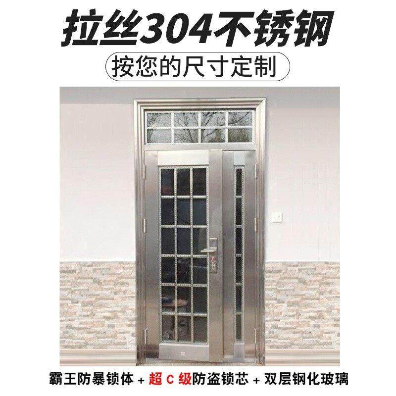 不锈钢门304不锈钢防盗门大门双开门农村入户阳台玻璃门家用单门
