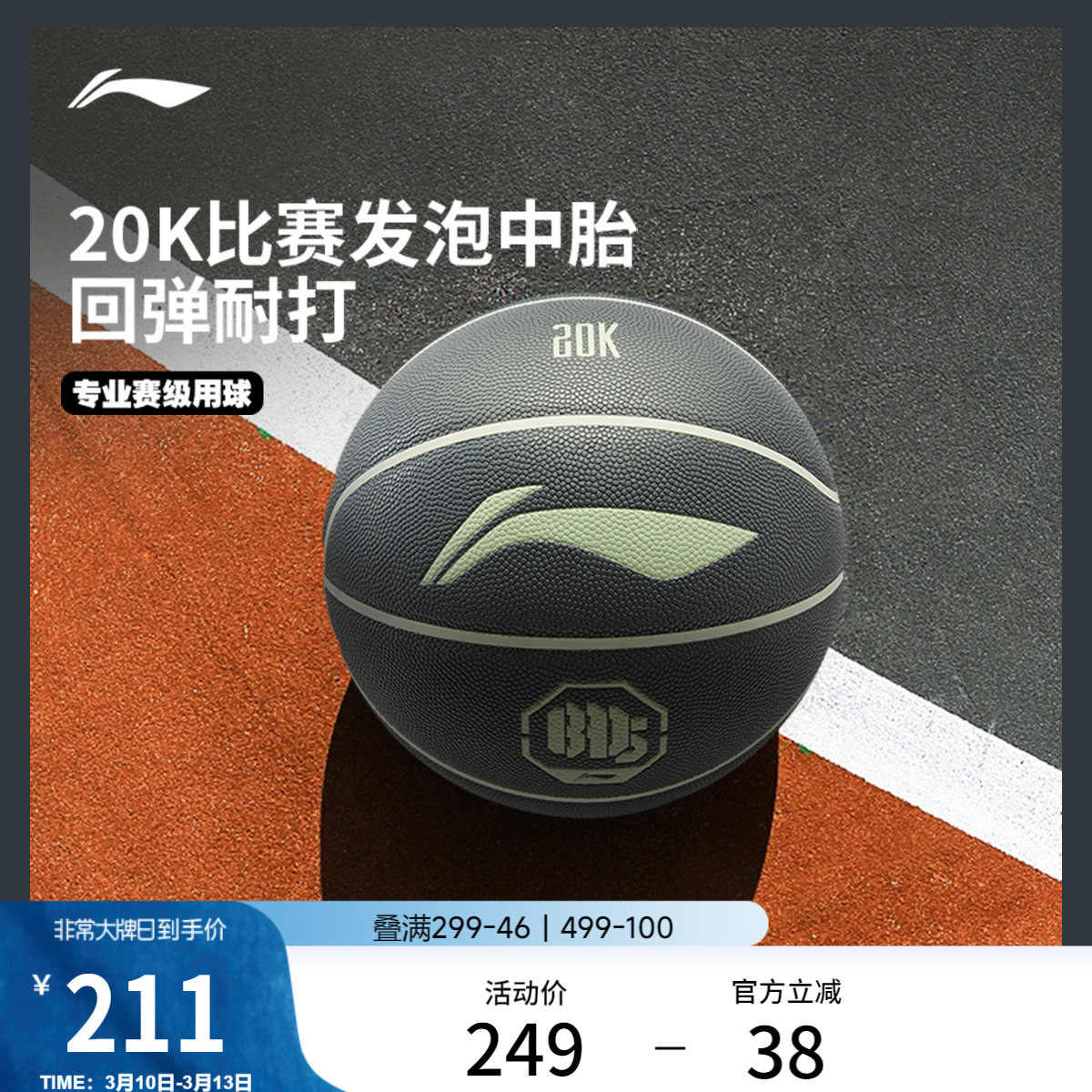 李宁反伍BADFIVE篮球七号篮球标准球男女同款室内外通用比赛篮球