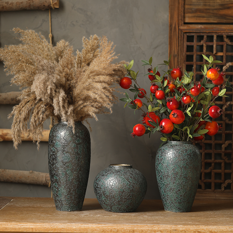 斑驳复古新中式陶罐侘寂风装饰品摆件玄关电视柜插花水培陶瓷花瓶