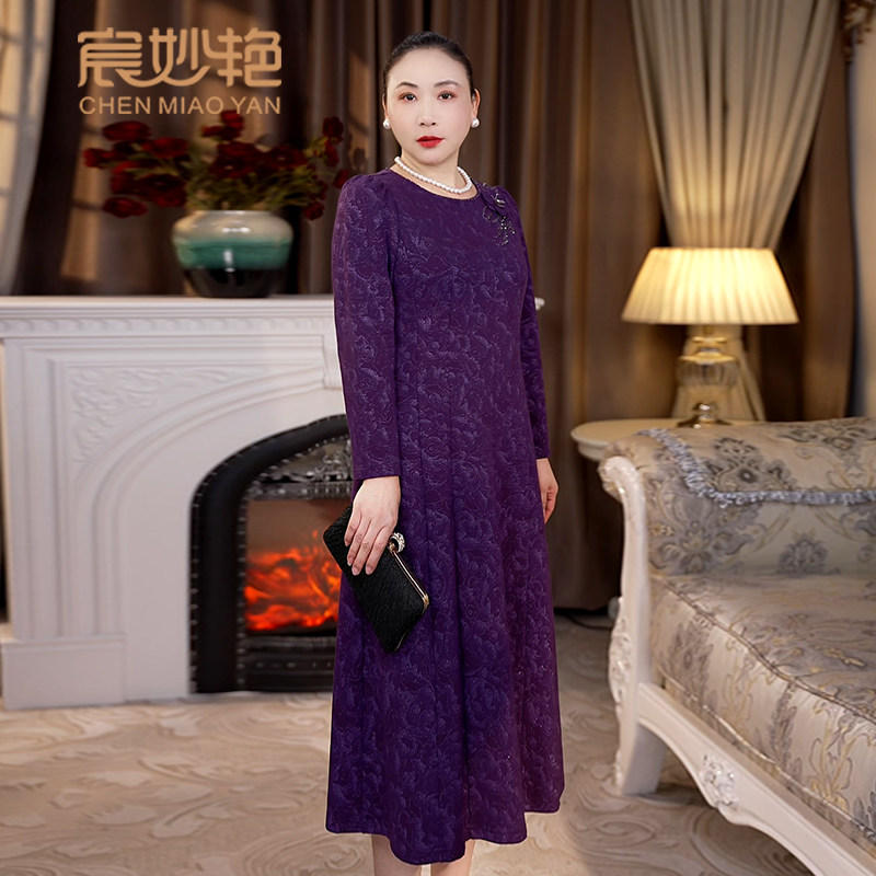 贵夫人国风改良连衣裙2025秋冬新款优雅紫色高贵气质显瘦长裙