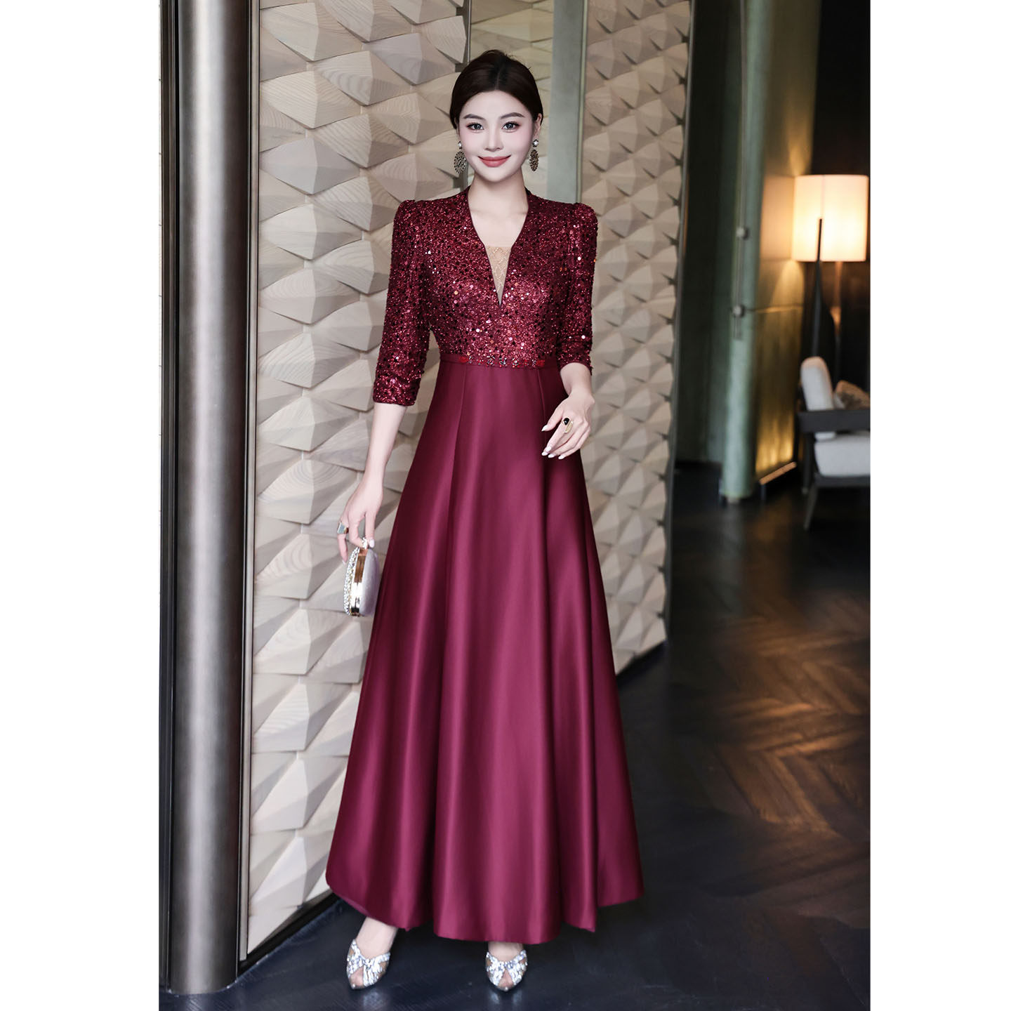 妈妈装高贵优雅敬酒服新娘婆婆气质结婚礼服女亮片高端订婚连衣裙