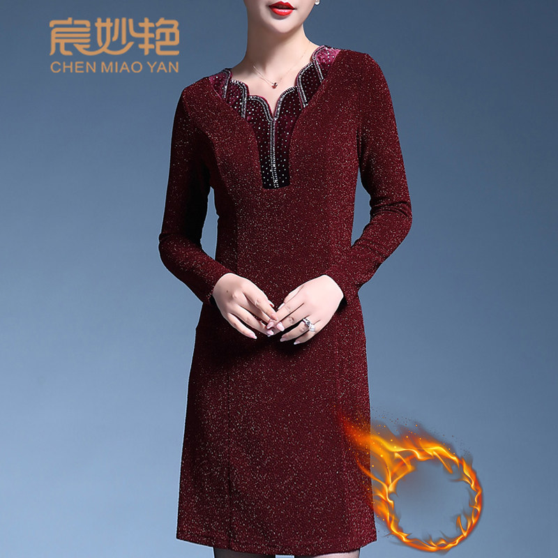 香妮芬妈妈丝绒连衣裙女秋季2025新款高贵优雅气质中年精致高端裙