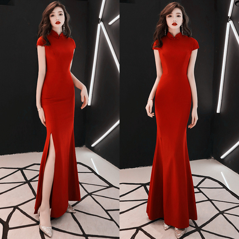 旗袍晚礼服复古气质高贵优雅修身连衣裙年会宴会舞台演出走秀长裙