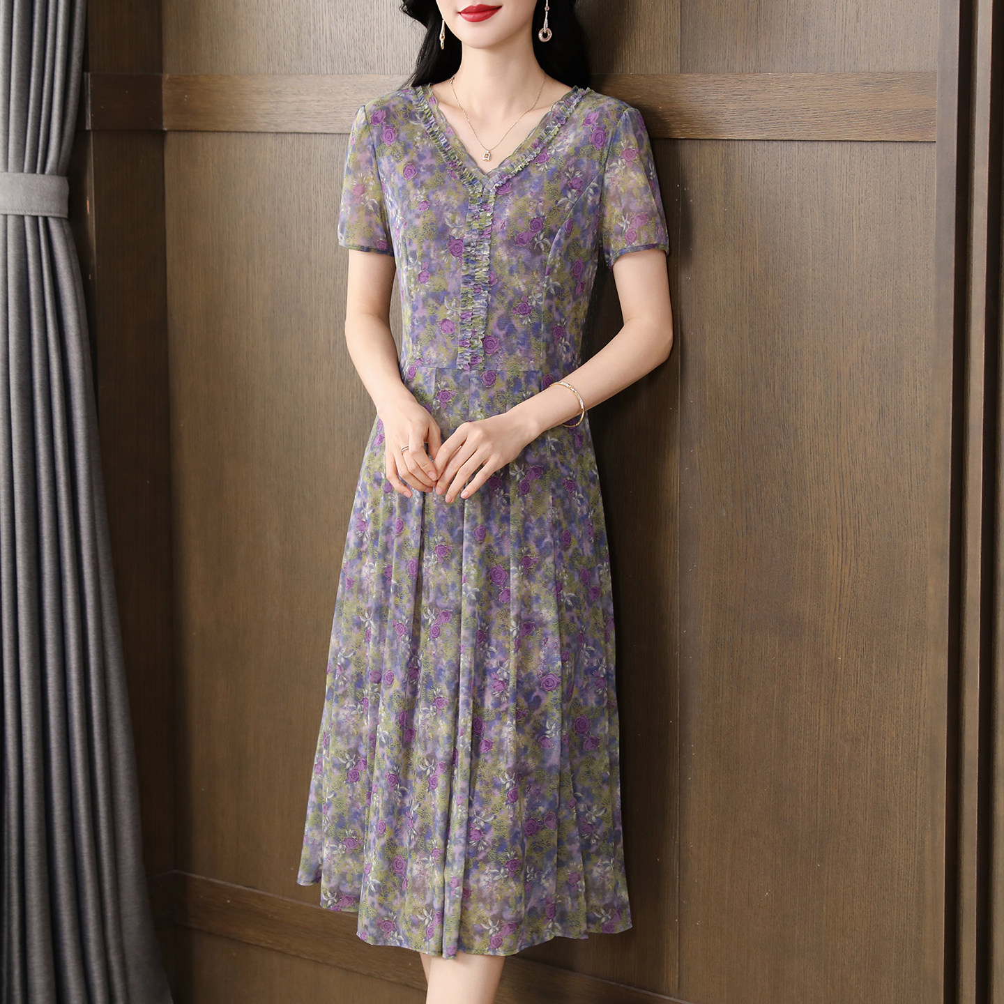 香妮芬高贵优雅复古中年妈妈气质连衣裙2025新款夏季碎花收腰裙子