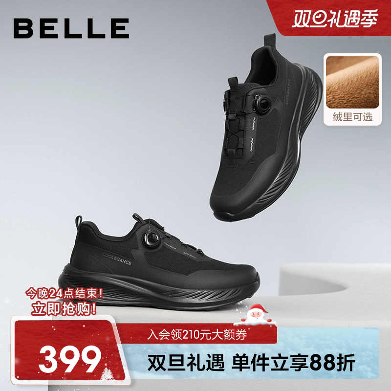 百丽男士厚底增高休闲健步运动鞋冬季棉鞋加绒户外跑步鞋A2048CM5