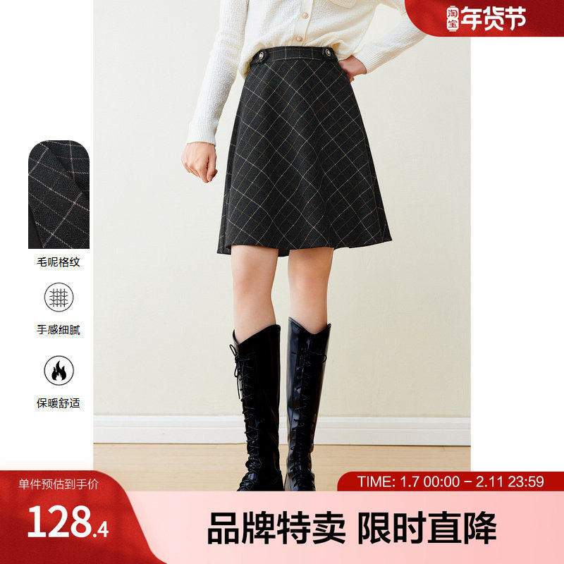 爱情魔鬼鱼 黑灰色A字半身裙女2025冬季新款韩系高腰百搭通勤短裙