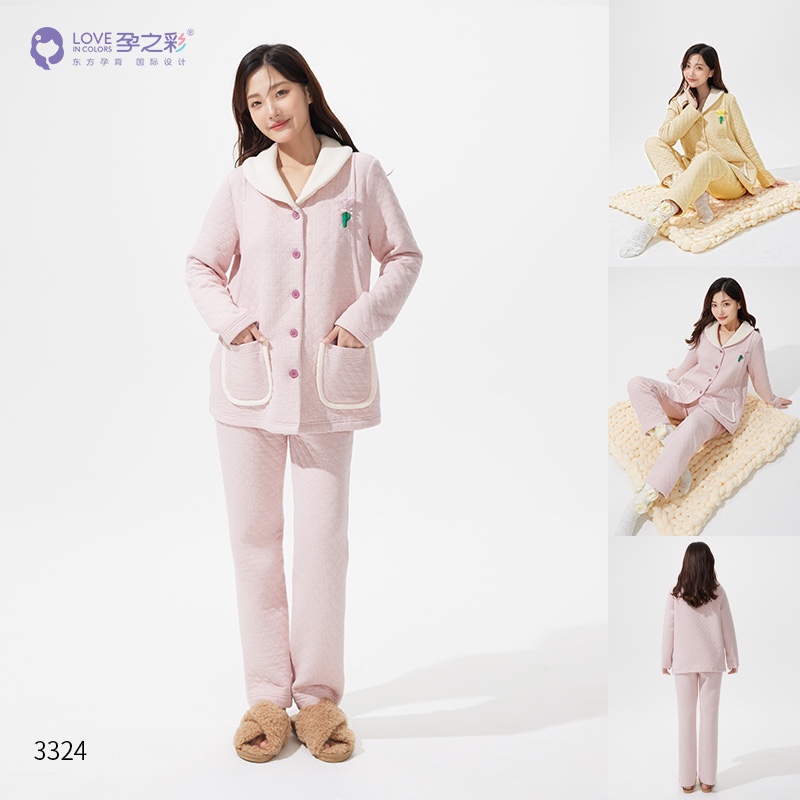 孕之彩秋冬哺乳月子服三层空气夹棉家居服喂奶套装YBT193324