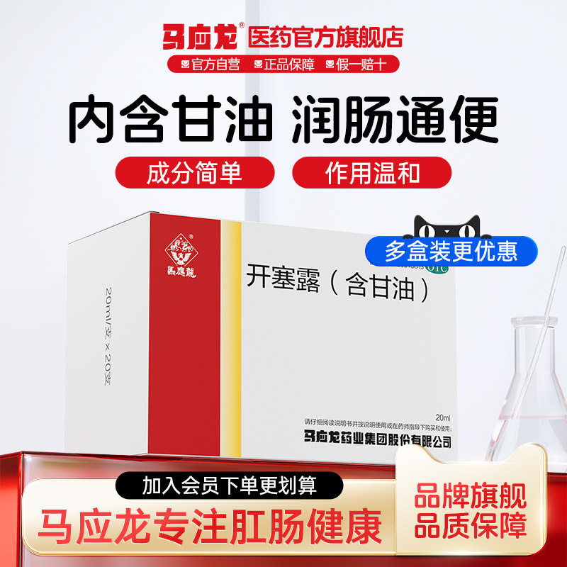 马应龙开塞露20支软化大便小儿儿童便秘老人通便神器排宿便便乃通