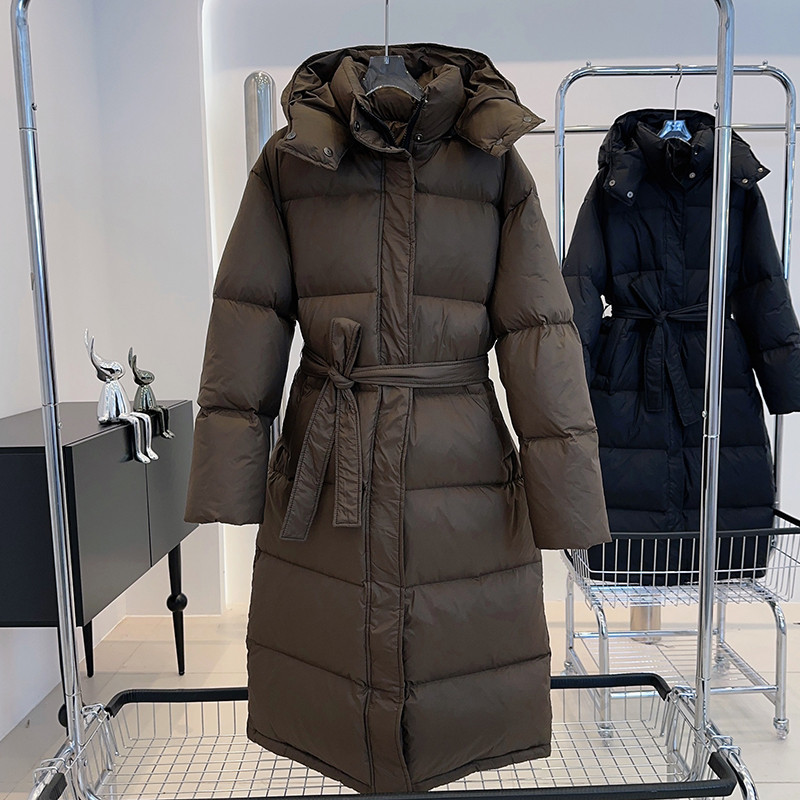 白鹅绒羽绒服女超长款到脚踝韩版宽松连帽长款过膝东北极寒厚外套