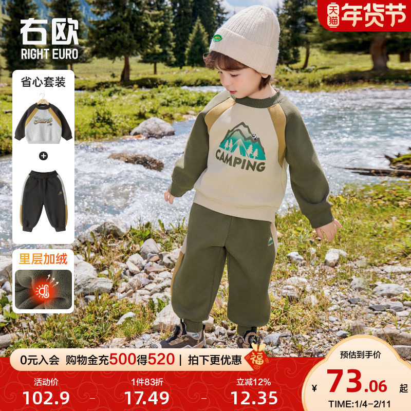右欧童装儿童春秋季套装新款洋气女童男童加绒保暖卫衣裤子两件套