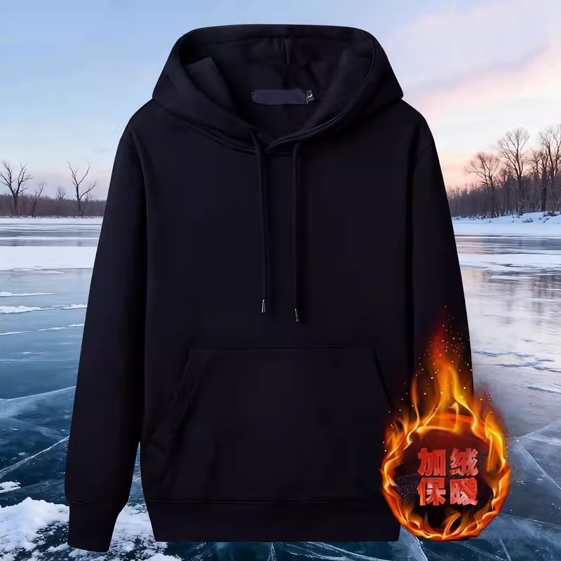 卫衣男士2025秋冬季新款宽松加绒加厚带帽衫黑色运动休闲连帽外套