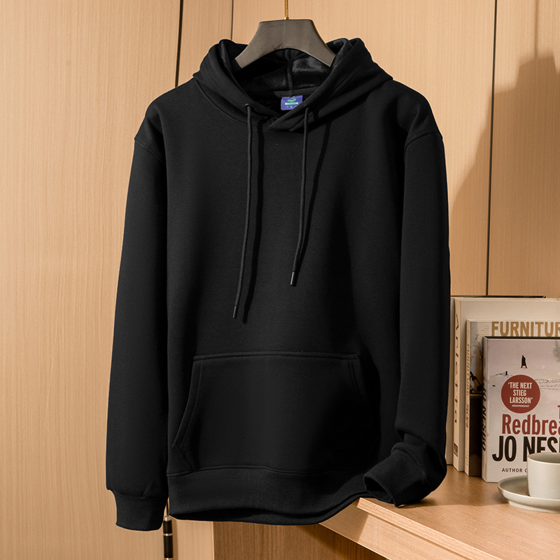 320g重磅纯色黑色卫衣男士连帽外套潮流帅气青少年加绒长袖带帽衫