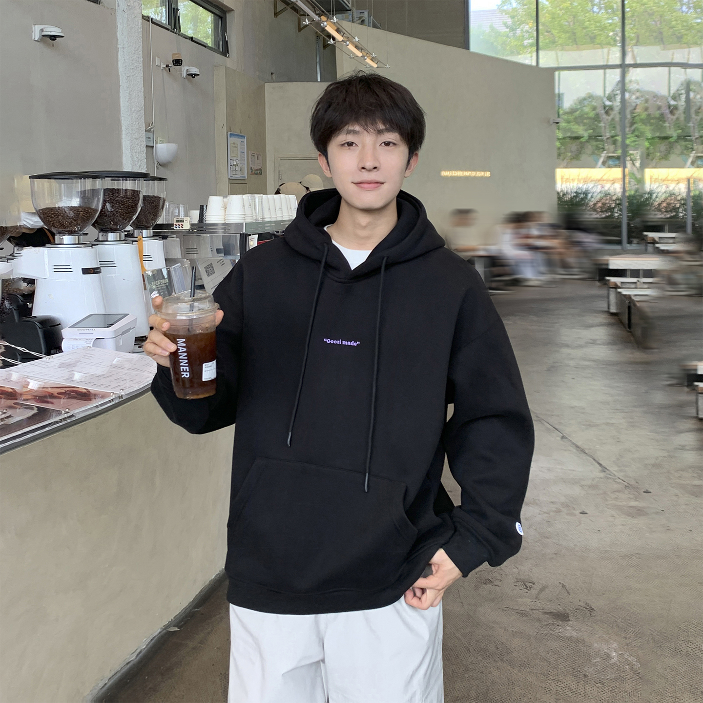 港仔文艺男420g重磅连帽卫衣男秋冬休闲黑色带帽上衣男生帽衫外套