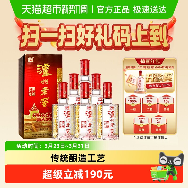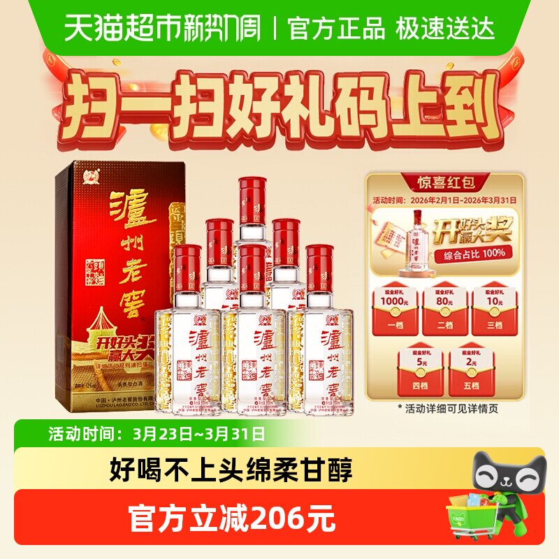【官方直营】泸州老窖六年窖头曲52度 整箱 浓香型白酒 送礼