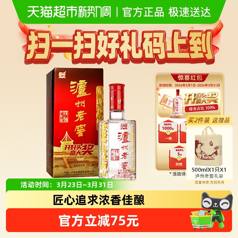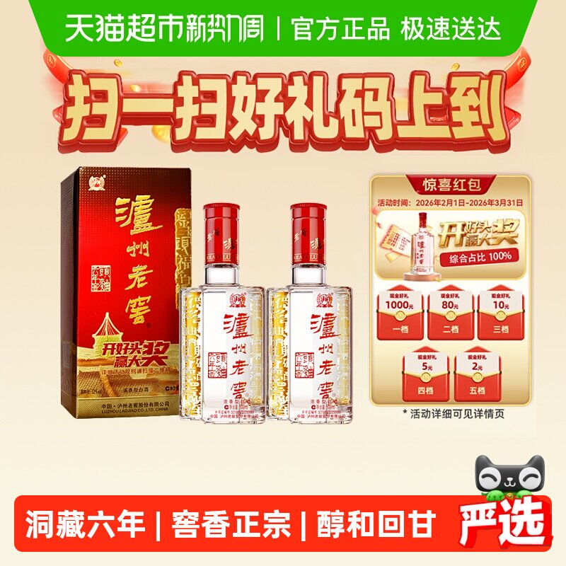 泸州老窖六年窖头曲52度500ml*2瓶浓香型高度白酒【含礼袋】