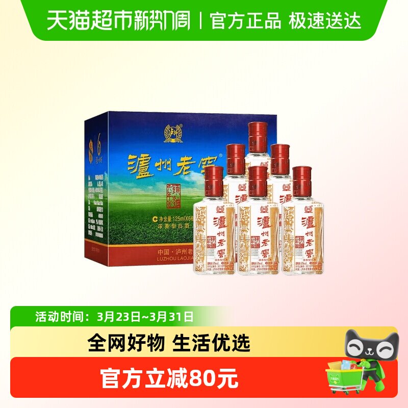 泸州老窖六年窖头曲小酒版52度125ml*6瓶*1盒浓香型口粮自饮白酒