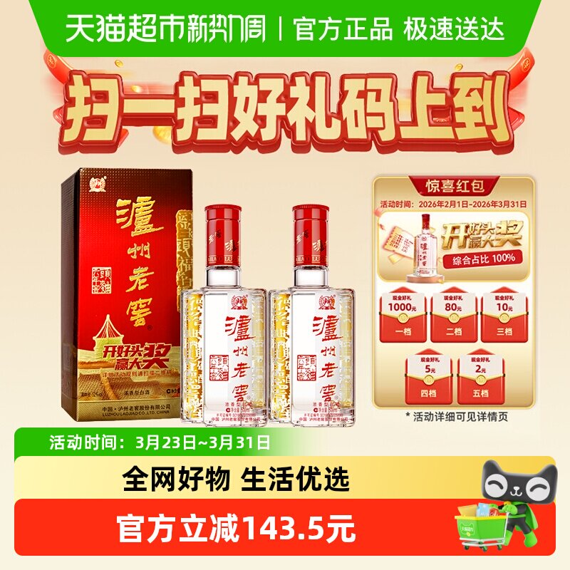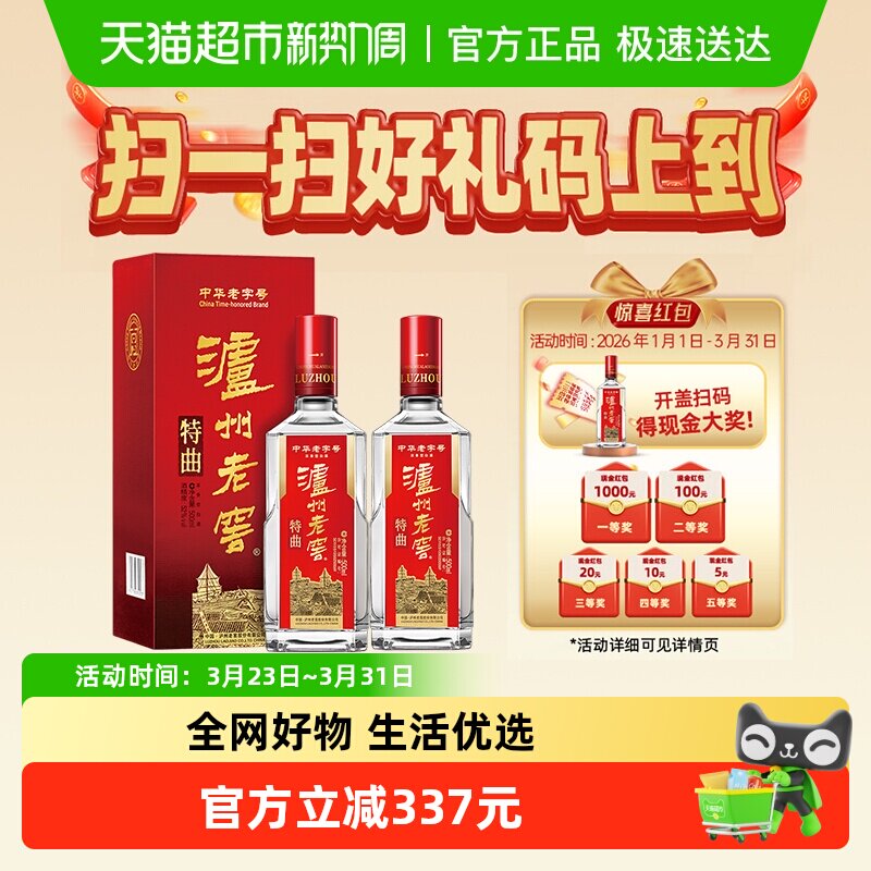 【官方直营】泸州老窖 特曲酒(60版)52度500ml*2瓶装 浓香型白酒