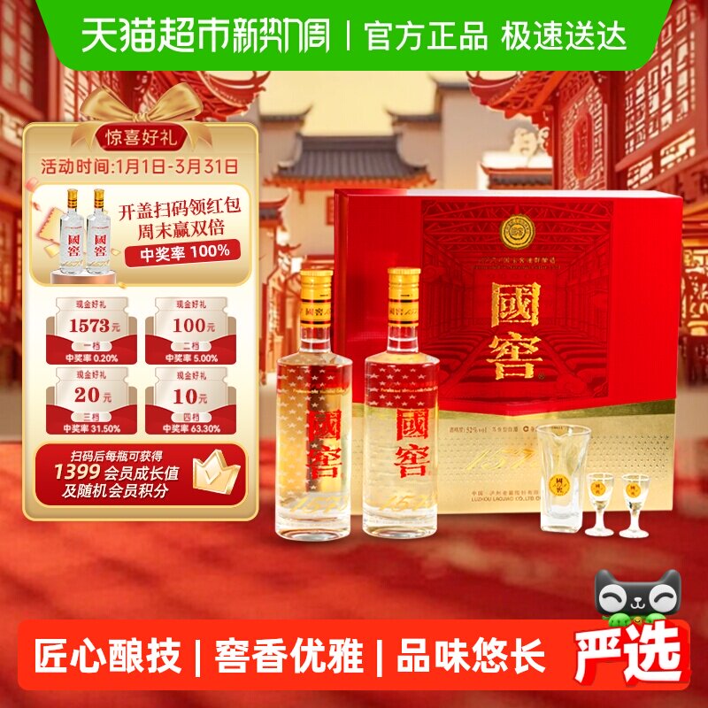 泸州老窖国窖1573 52度500ml*2瓶礼盒装浓香型白酒
