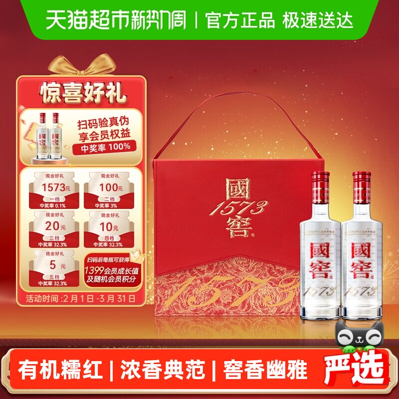 泸州老窖国窖1573经典装52度500ml*2瓶浓香型白酒版本年份随机