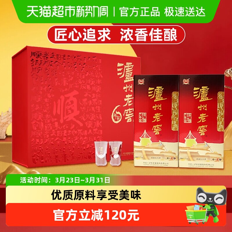 泸州老窖六年窖头曲52度500ml*2瓶马年生肖礼盒浓香型高度白酒