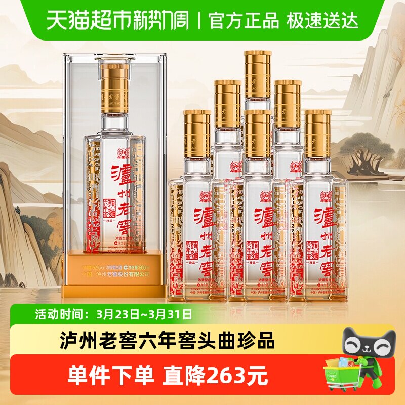 泸州老窖六年窖头曲珍品52度整箱装500ml*6瓶浓香型白酒