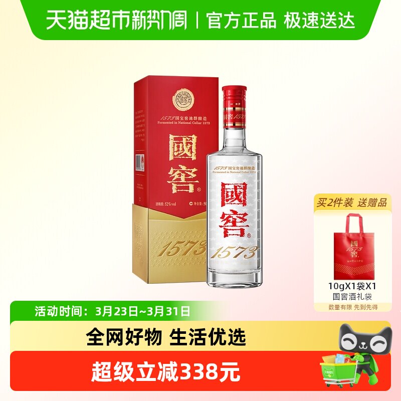 泸州老窖国窖1573经典516礼盒浓香型白酒52度516ml*2瓶礼盒装