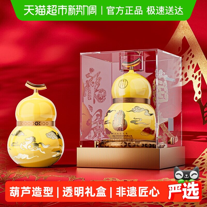 泸州老窖马年生肖酒葫芦定制酒福禄自在黄52度999ml礼盒装白酒