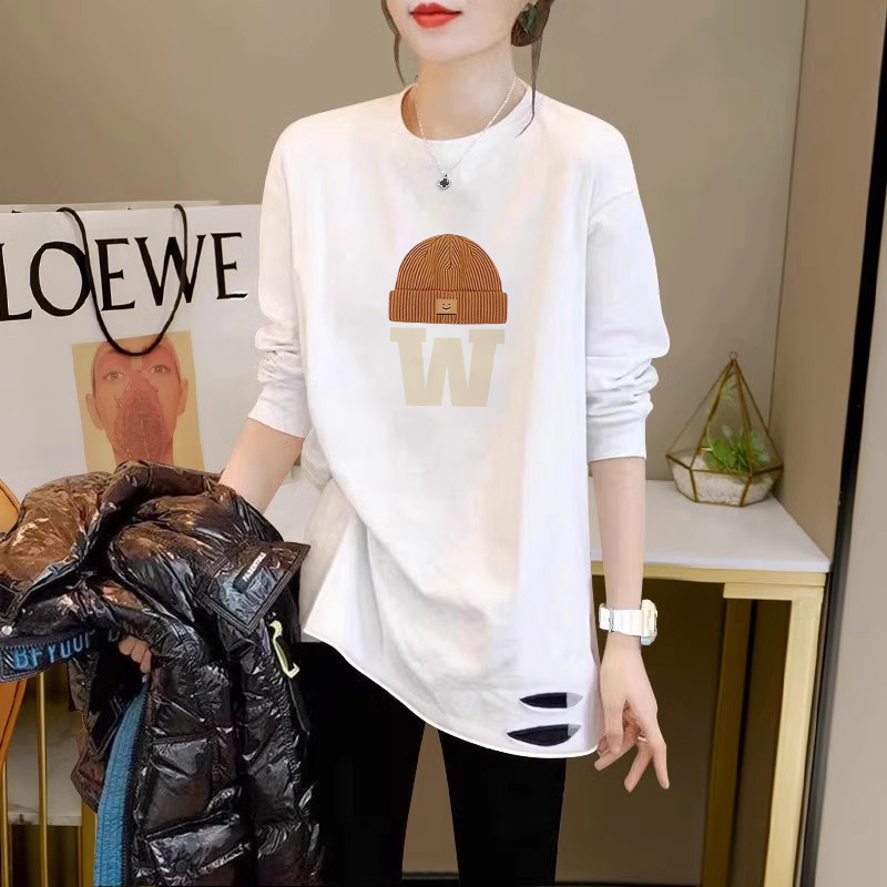 白色卫衣t恤女长袖中长款上衣女遮屁股洋气宽松慵懒风加绒打底衫