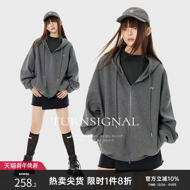 TurnSignal潮牌开衫连帽卫衣外套女春秋2025新款休闲宽松拉链帽衫