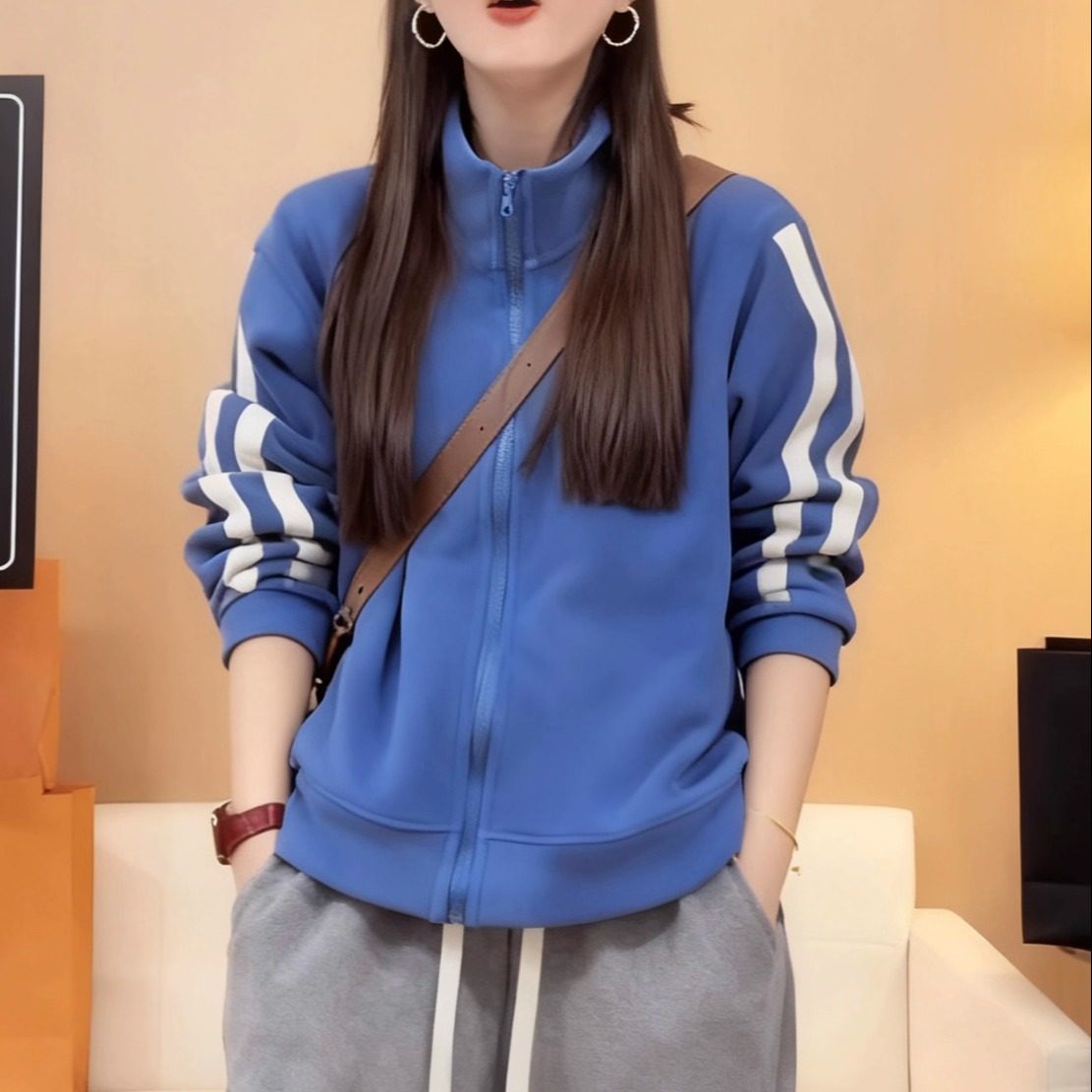 潮牌双面奥粒绒立领卫衣女2025冬季新款休闲百搭显瘦开衫外套