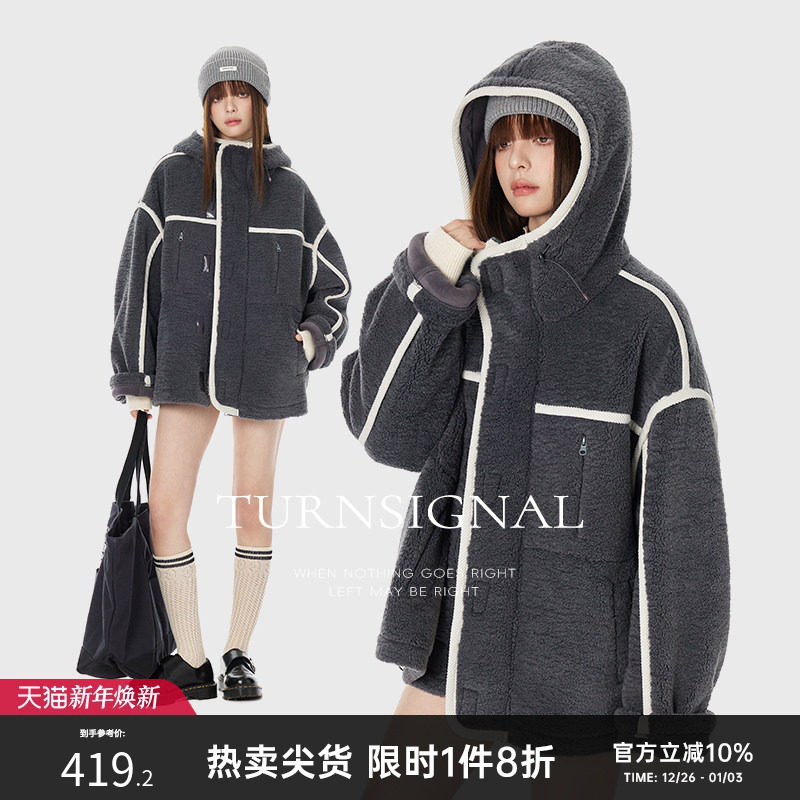 TurnSignal潮牌仿羊羔毛外套女秋冬2025新款休闲宽松时尚绒外套