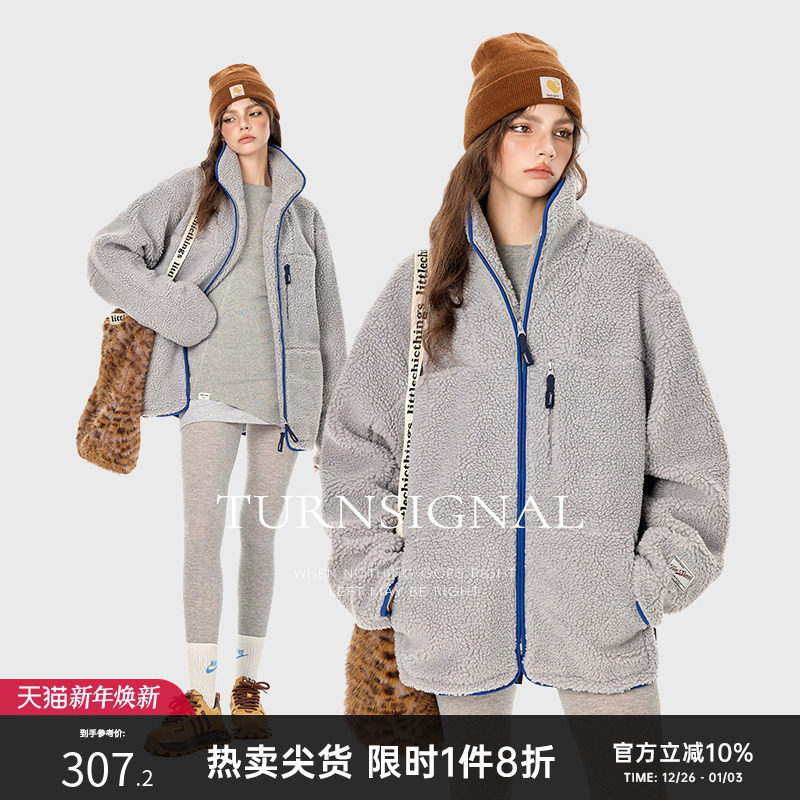 TurnSignal潮牌仿羊羔毛外套女秋冬2025新款宽松保暖立领绒外套