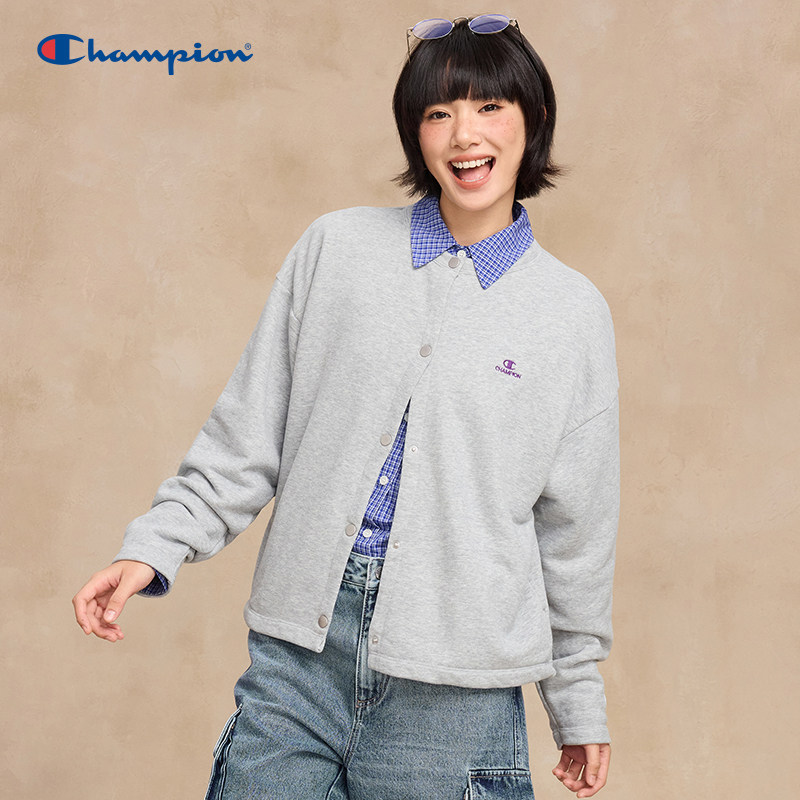 Champion冠军卫衣开衫女2025冬新款潮牌外套休闲风复古红色圆领秋