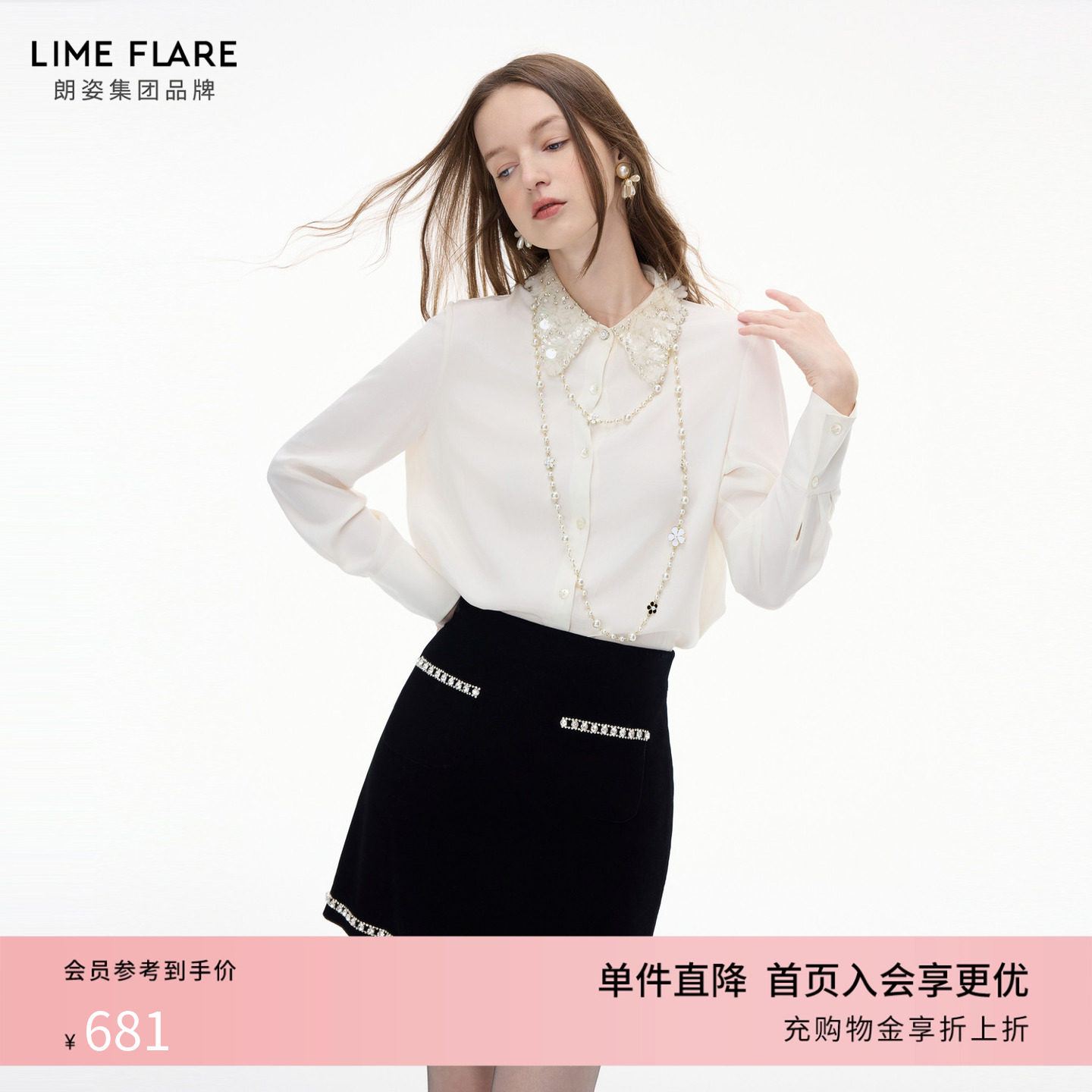 朗姿/莱茵福莱尔重工蕾丝通勤气质百搭白色衬衫长袖上衣女高级感