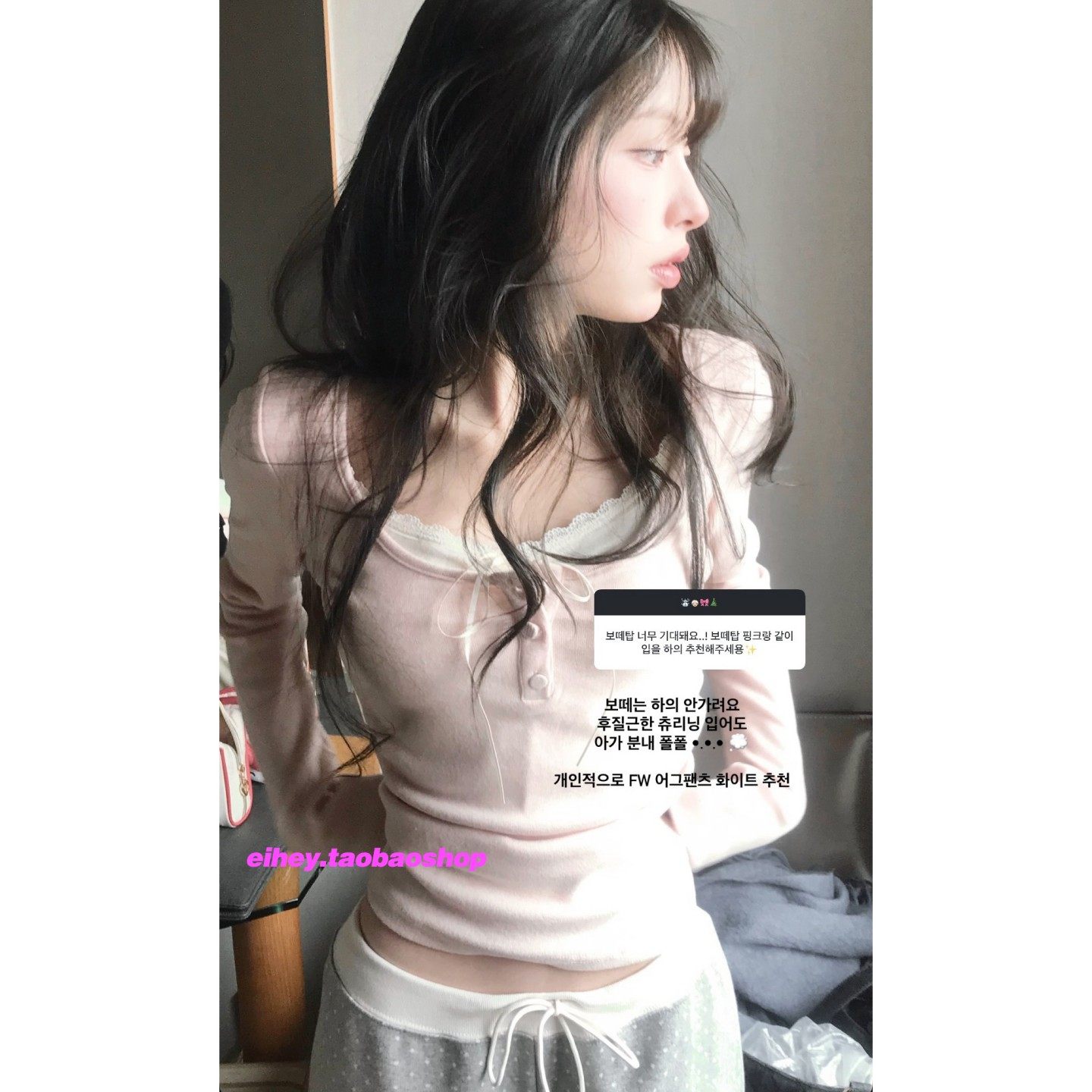eihey诶嘿秋冬韩系温柔纯欲风假两件显瘦百搭蕾丝边长袖T恤上衣女