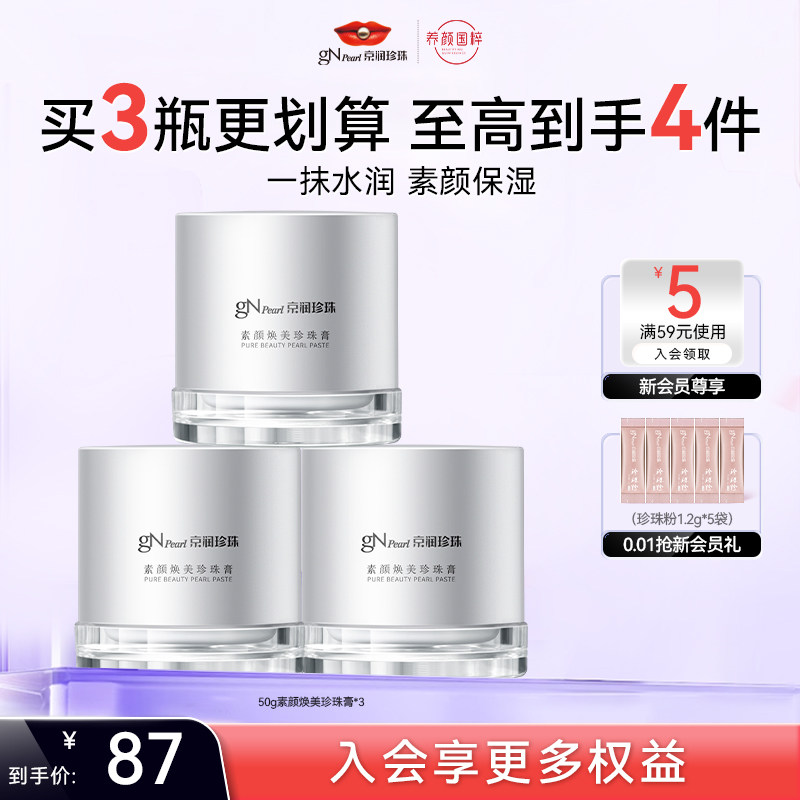 京润珍珠素颜焕美珍珠膏50g懒人面霜保湿素颜霜日常女生官方正品