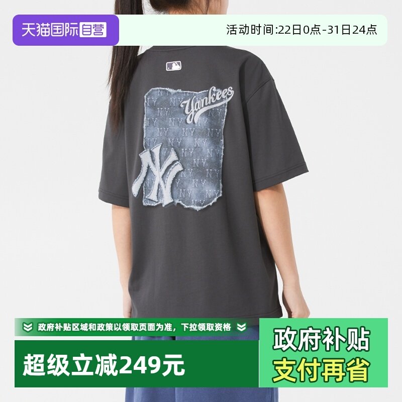 【自营】MLB情侣短袖男女装新款后背仿牛仔老花运动服休闲T恤