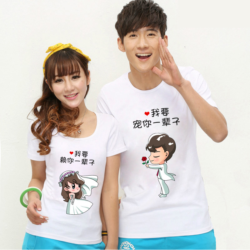 新款情侣装T恤夏装韩国女结婚登记婚纱照情侣求婚款圆领短袖半袖