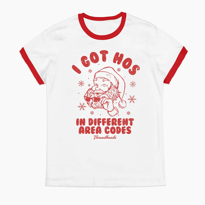2025新款Christmas圣诞节礼物情侣装欧美休闲趣味插画男女款短T恤