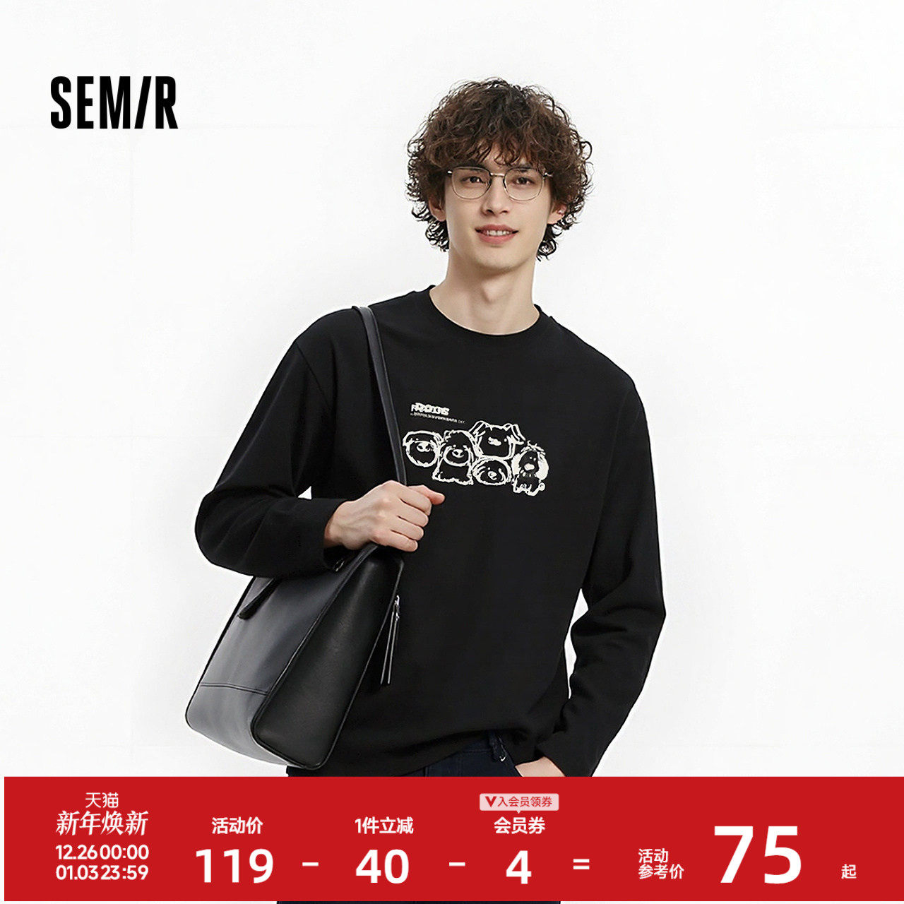 森马长袖T恤男冬季萌宠印花情侣装2025新款内搭上衣圆领休闲装潮